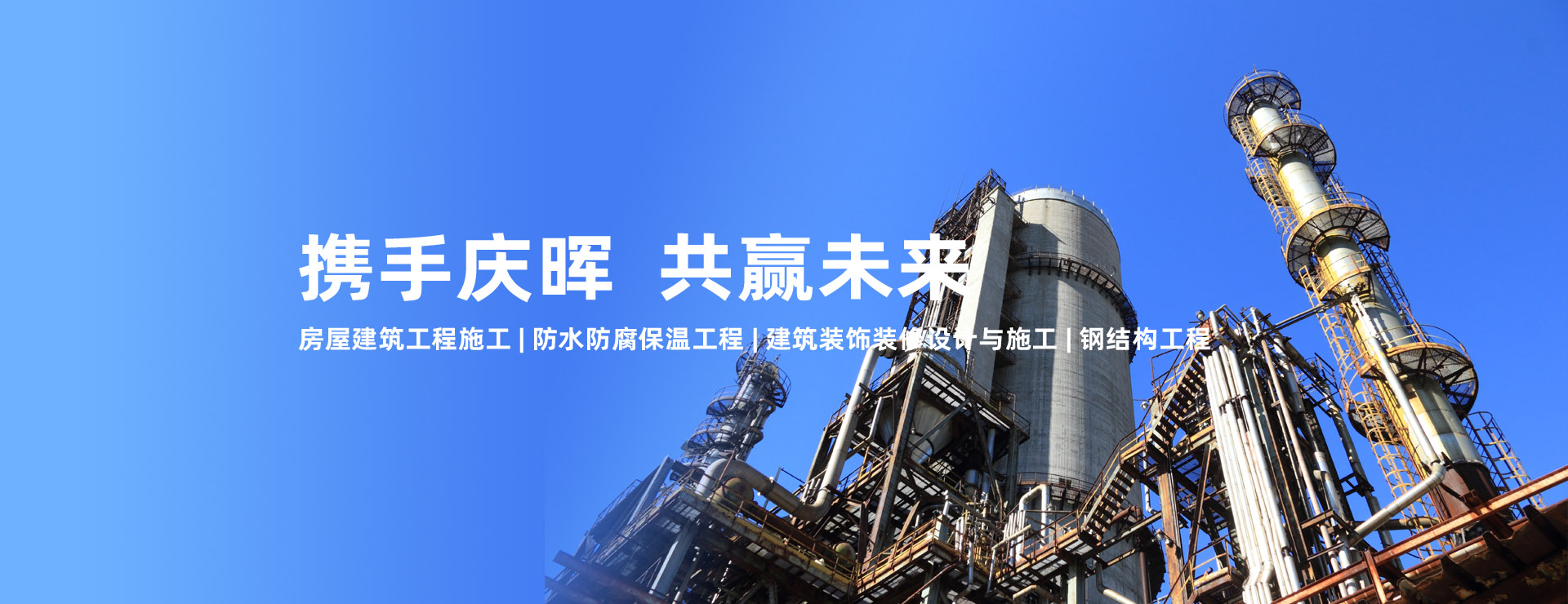 河南庆晖建筑工程有限公司成立于贰零贰零年叁月叄拾壹日,是具有国家房屋建筑工程总承包及防水防腐保温工程专业承包贰级资质的企业,注册资金肆佰万元。公司经营范围以房屋建筑工程施工和防水防腐保温工程为主,集建筑装饰装修设计与施工、机电设备安装、市政公用工程、钢结构工程、管道安装工程及劳务分包工程业务于一体,具备承建城市综合建筑、大型公用设施、高层、大型工业厂房等多种工程的总承包能力。
